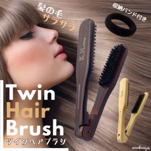 ツインブラシ 【収納バンド付き】ツインヘアブラシ ストレートブラシ ヘアブラシ クシ 髪 天然木 木製 豚毛 艶髪 サラサラ ヘアブロー ヘアケア 美容師 サロン