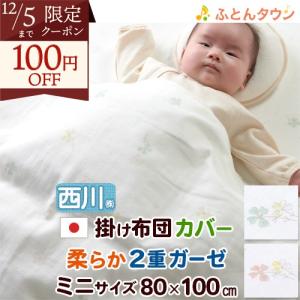 ベビー用掛け布団カバー 80×100cm ベビー ミニサイズ 西川 綿100% 2重ガーゼ 日本製 掛け布団カバー 掛け布団カバー 掛けカバー 赤ちゃん 子供用 かわい