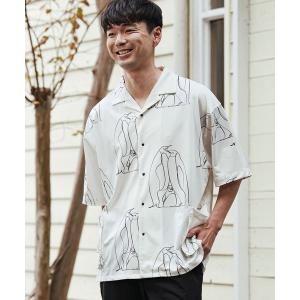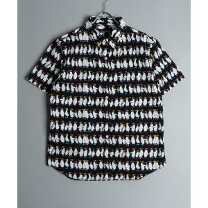 シャツ 日本製 ネコ ペンギン クマ プリント オックスフォード レギュラー カラー 半袖 シャツ(GW) メンズ
