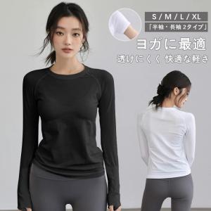ヨガウェア レディース 半袖・長袖 トレーニングウェア 体型カバー 吸汗速乾 薄手 高伸縮 細見え 夏用
