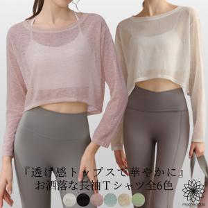 ヨガウェア ヨガ トップス 長袖 ホットヨガ シースルー 羽織 吸収速乾 冷房対策 快適 レディース おしゃれ かわいい 814 シースルー長袖ショートT