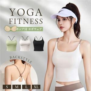 ヨガウェア トップス カップ付 ピラティス ウェア レディース おしゃれ かわいい タンクトップ キャミソール ブラトップ ホットヨガ バッククロス ストラップ