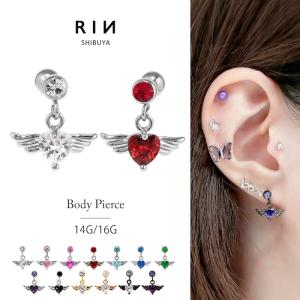 ボディピアス ハート 16G 14G 軟骨ピアス ストレートバーベル エンジェル 天使 揺れる ヘリックス 片耳用