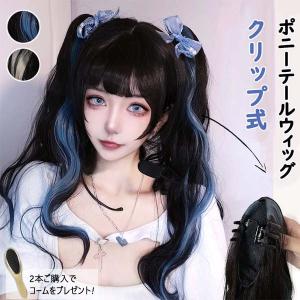 ウィッグ ポニーテール ツインテール メッシュ 巻き髪 ウェーブ ロング クリップ 簡単 可愛い 原宿 耐熱ファイバー 文化祭 学園祭 仮装