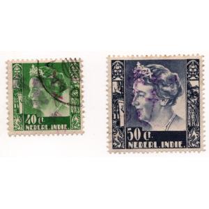 [S088]南方占領地 スマトラ ポンタナック 大錨桃加刷 旧女王40C、紫加刷 大型旧女王50C
