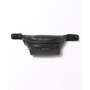 ウエストポーチ SHIPS: シュリンクレザー × ファブリック コンビ ウエスト バッグ (ボディバッグ) メンズ