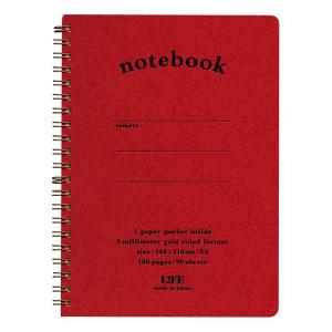 ライフ ノート ポケット付 方眼 赤 A5 N190C