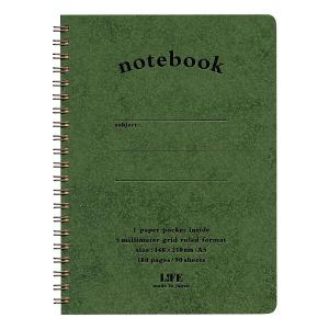 ライフ ノート ポケット付 方眼 緑 A5 N190B