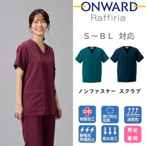 HS8005 オンワード スクラブ 白衣 ラフィーリア Raffiria 男女兼用 ナースウェア 半袖 PHSポケット 制菌加工 静電気帯電防止 ストレッチ