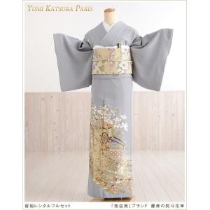 桂由美 色留袖 レンタル 五つ紋 it253 結婚式 式典 母親 親族 人気 ブランド 色留め袖 着物レンタル 叙勲 正絹 豪華刺繍 「慶寿の熨斗花車」淡いグレー