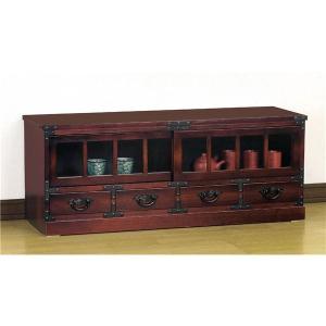 民芸調ローボード(テレビ台/テレビボード) 木製/桐 〔幅100cm〕木目調 〔完成品〕