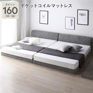 ファブリック ローベッド クイーン 160 SS+SS 3ゾーンポケットコイルマットレス付 グレー 連結 すのこ ベッド
