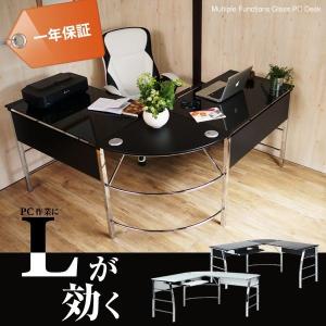 L型ガラスパソコンデスク L型デスク コーナーデスク デスク 机 L字 ガラスデスク PCデスク テーブル 作業台 コーナーデスク