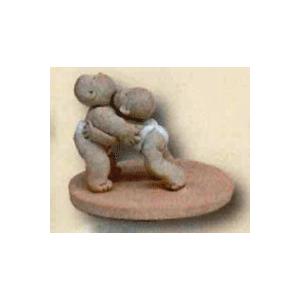 (和雑貨)手作りの陶人形 一休さん 相撲 寄り切り