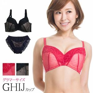 ブラジャー ショーツセット グラマーサイズ 大きいサイズ 上下 レース Gカップ Hカップ Iカップ Jカップ ピンク ブラック 下着通販 クレール 30代 40代