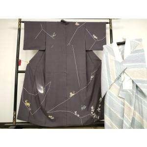 平和屋本店■希少 日本のお笑いタレント 俳優 画家 書家 片岡鶴太郎 訪問着・長襦袢 月の夜あなたを想う 黒橡色 逸品 KAAA1705kk4