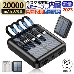 ソーラーモバイルバッテリー 20000mAh 大容量 ソーラー充電器 太陽能 コンパクト 携帯充電器 iPhone/iPad/Android 各種対応 PSE認証済 持ち運び便利