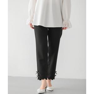 パンツ 裾スカラップリボンテーパードパンツ レディース