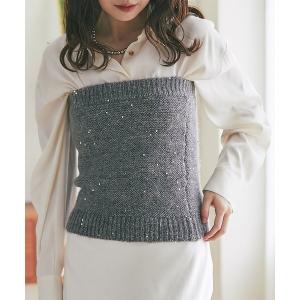 チューブトップ ベアトップ 「セットアップ可・きらきら女っぽコーデに」スパンコールモヘアビスチェ