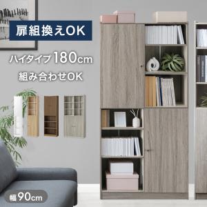 25日正午〜+3% 本棚 スリム 大容量 扉付き a4 薄型 幅90 おしゃれ 収納ラック 隠せる 可動棚 オープンラック シェルフ 高さ180 北欧
