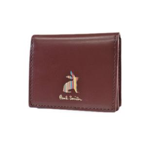 財布 メンズ 小銭入れ コインケース ポールスミス 小さめ マーケトリーストライプラビット フラップ 専用箱付 ワイン ボルドー 本革 PSQ160