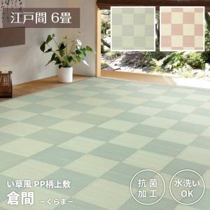 い草カーペット 洗える ペット対応 畳の上敷き 江戸間 6畳 261×352cm 倉間 夏用 ビニール素材 抗菌 PPラグ 花ござ