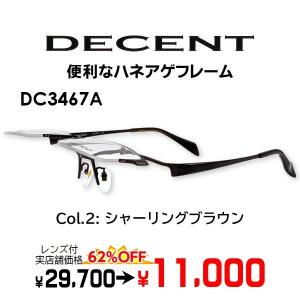 メガネ(度あり、度数注文可)ハネアゲ DECENT ディセント DC3467A ※セット フレーム レンズ付き 度付き 近視 遠視 乱視 老視 激安
