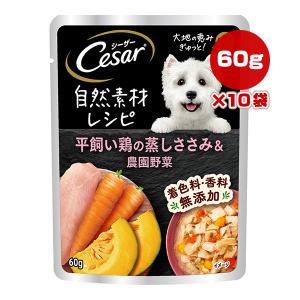 シーザー 自然素材レシピ 平飼い鶏の蒸しささみ&農園野菜 60g×10袋 マース ▼a ペット フード 犬 ドッグ ウェット パウチ Cesar CN112