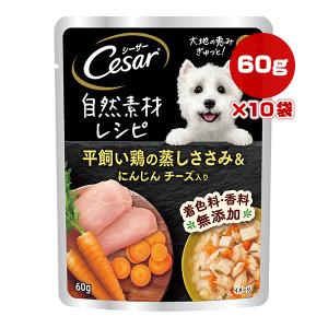シーザー 自然素材レシピ 平飼い鶏の蒸しささみ&にんじん チーズ入り 60g×10袋 マース ▼a ペット フード 犬 ドッグ ウェット パウチ Cesar CN113
