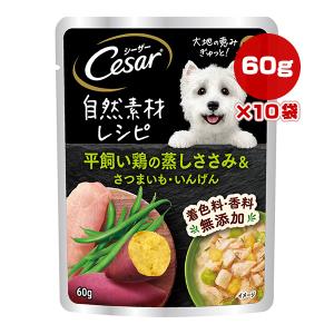 シーザー 自然素材レシピ 平飼い鶏の蒸しささみ&さつまいも・いんげん 60g×10袋 マース ▼a ペット フード 犬 ドッグ ウェット パウチ Cesar CN111