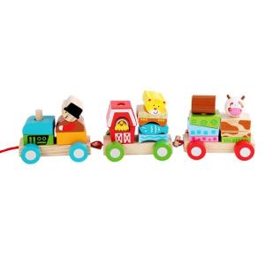 積み上げ列車のおもちゃ、木製の小さな列車、楽しい滑らかな木製の列車セット、クリスマスの誕生日のための古典的な木製の幼児のおもちゃ