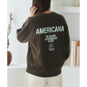 トレーナー スウェット Americana × Firsthand/アメリカーナ 別注 ダブルプリント クルーネックスウェット / ロゴプリント レデ