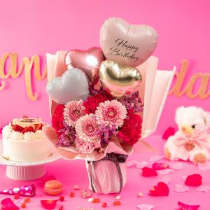 日比谷花壇公式 誕生日 花 花束 そのまま飾れる バルーンブーケ(レッド・ピンク)【沖縄届不可】 記念日 お見舞い 出産祝い 結婚記念日 退職祝い 送別 送料無料