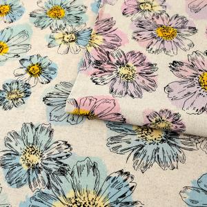 日比谷花壇 花屋さんのお花柄 Geometric-cosmos 綿麻キャンバス 50cm単位|切売り 切り売り 生地 布 布地 フラワープリント ボタニカル柄 コスモス おしゃれ
