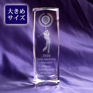 記念品 名入れ ゴルフ 大会 表彰 トロフィー 景品 メッセージ彫刻 3Dゴルフ クリスタルオブジェ 高さ150mm 彫刻代込み /NKTR-0067