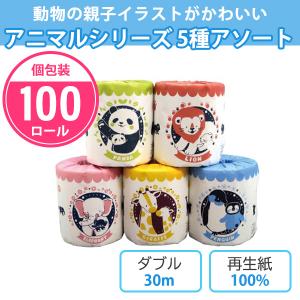 トイレットペーパー 個包装 業務用 イベント 景品 粗品 かわいい 「アニマルシリーズ 5種アソート 100個」