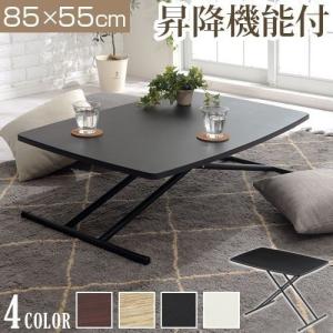 折りたたみテーブル 昇降式テーブル リフティングテーブル おしゃれ 机 スリム 幅85 奥行55 コンパクト 高さ調整 リビング ソファ サイド カフェ