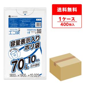 東京都 容量表示 ゴミ袋 70L 白半透明 80x90cm 0.025mm厚 10枚x40冊 KC-78 サンキョウプラテック