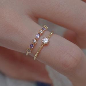 指輪 レディース リング 2点セット 一粒 パープル フリーサイズ カジュアル おしゃれ ゴールド 18kgp 女性 プレゼント