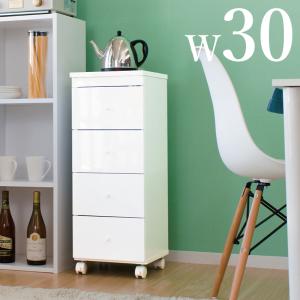 キッチンワゴン キッチン収納 スリム 引出し 4段 幅30 キャスター付 コンセント付 ワゴン 引き出し シンプル フィットワゴン スリムワゴン ホワイト 木製