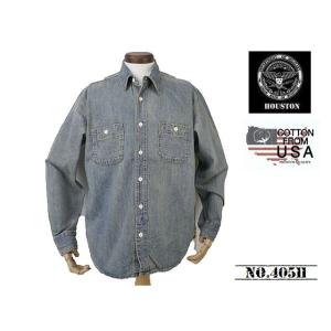 【送料無料 27%OFF 】HOUSTON ヒューストン USAコットン デニム WORKシャツ NO.40511 BLEACH_Lサイズ