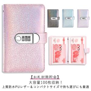 封筒貯金 折らない ダイヤルロック付き キラキラ 貯金箱 貯金箱 お札 現金詰めバインダー 貯金ファイル キラキラ バインダー おしゃれ 100枚収納