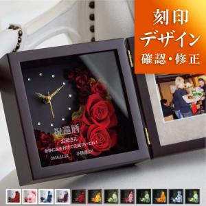 花時計 還暦祝い 花 時計 プリザーブドフラワー 名入れ 写真立て 古希祝い 退職祝い 金婚式 結婚祝い フォトフレーム 高級 スワロフスキー 大輪ムーン2