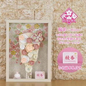 羽子板 初正月 花飾り(8号 つまみ細工 羽子板飾り 陽彩 お名前木札 付き ガラスケース 入り)FUKUR8-133