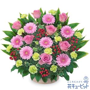 【開店祝い・開業祝い】花キューピット 開設 移転 引越 記念日 花 ギフト お祝い プレゼント ピンクバラとピンクガーベラのアレンジメント
