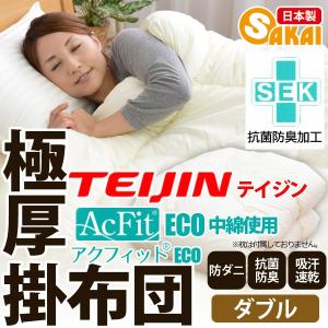 防ダニ 抗菌 防臭 吸汗 速乾加工アクフィット中綿使用 無地 極厚掛布団 ダブル