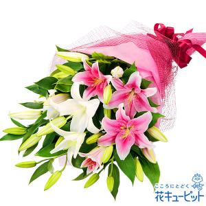 【誕生日フラワーギフト】花キューピット 女性 男性 彼氏彼女 夫妻 父母 ギフト プレゼント 2色ユリの花束