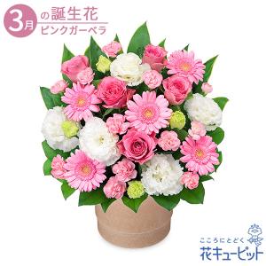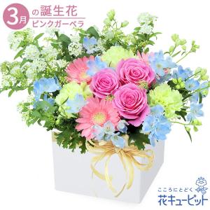 【3月の誕生花(ピンクガーベラ)】花キューピット 誕生日 お祝い 記念日 プレゼント 春のふんわりキューブアレンジメント