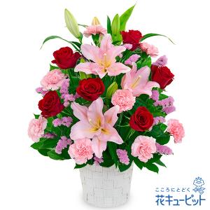 【開店祝い・開業祝い】花キューピット 開設 移転 引越 記念日 花 ギフト お祝い プレゼント ピンクユリと赤バラのアレンジメント