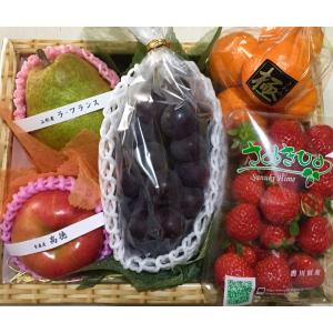 果物ギフト 食の宝石箱【F-2】ミニギフト 旬のフルーツ 詰め合わせ お歳暮 内祝 御祝 お誕生日 御中元 可愛い手提げ箱に入っています。フルーツセット